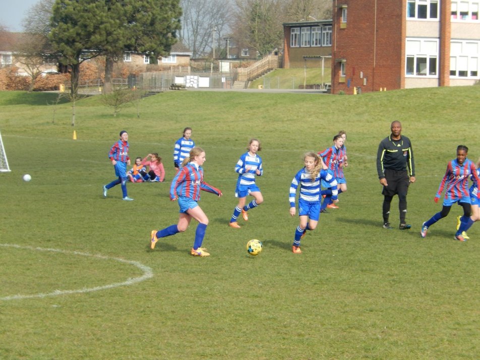 This was a convincing 8-0 win for the girls with strong performances all round. Morgan volunteered to play in goal and did a great job: safe hands, strong clearances and conviction to come out when needed to deal with a threat. The defence was solid. Jess played her first game and was very strong and committed at right back. Alana made some important clearances, including one where the opposition looked sure to score. Lorna and Sadie were composed and showed good control in playing the ball out from the back. Isla did a great job linking up the team in midfield.
